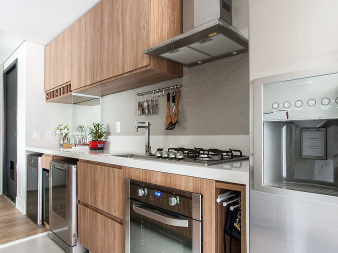 A integração dos espaços sociais, o controle da iluminação e o uso da madeira como elemento estruturante da linguagem arquitetônica definem um projeto fluido, sofisticado e funcional.